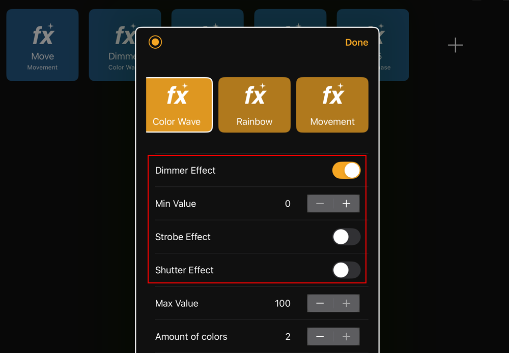 - Dimmer Effects can now optionally include strobe and shutter, enabling more dynamic intensity-based effects.