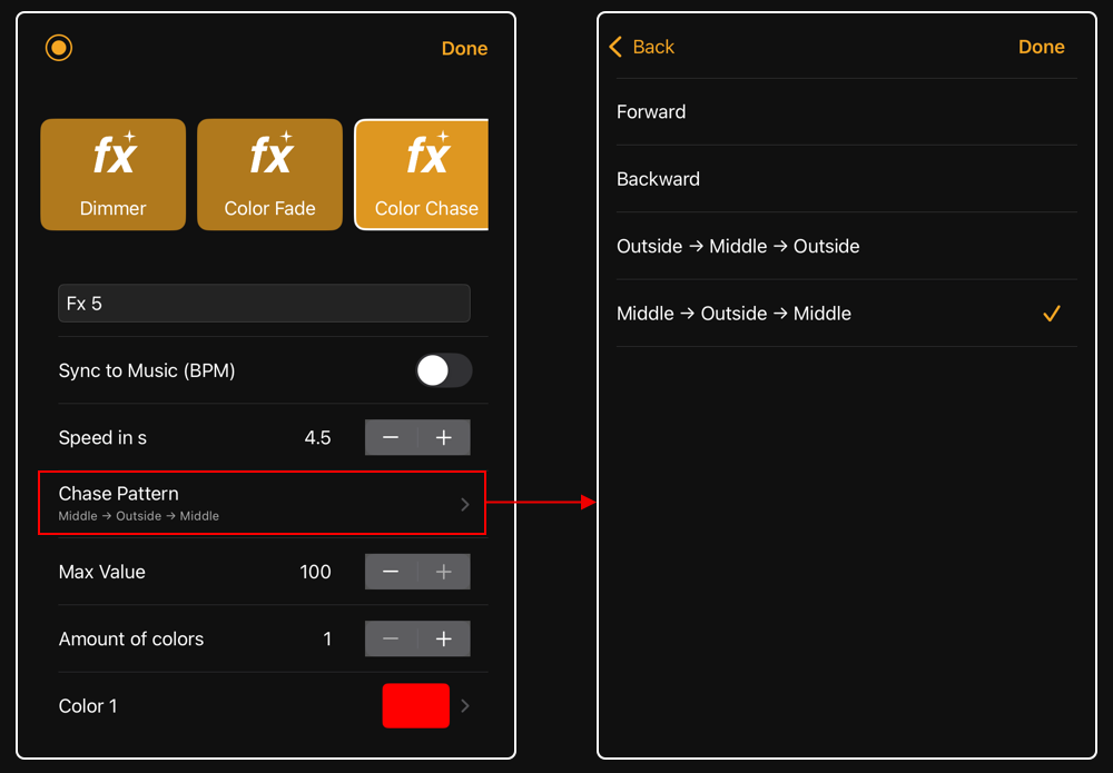 - Chaser Effects are now available as a separate effect type and support multiple patterns, including forward, backward, bounce in/out, and bounce out/in.