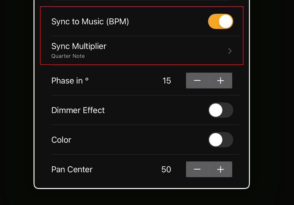 Tempo-based effects can now be synchronized using BPM or Ableton Link, ensuring tight, music-driven timing across your setup. Effects based on fixed value and fade times remain independent, as their timing is defined directly by their parameters.