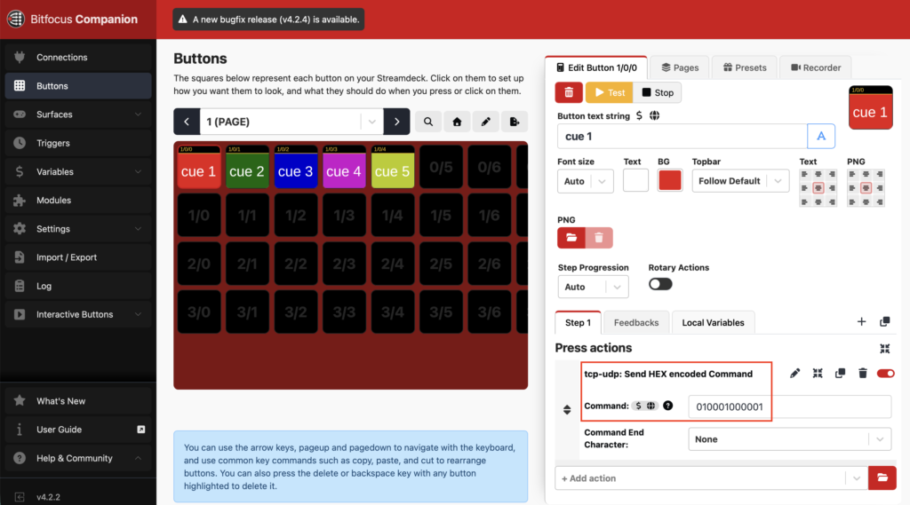 - Button Action: Send UDP Command