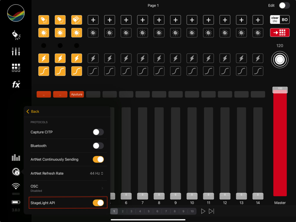 Settings > Protocols > StageLight API > Enable